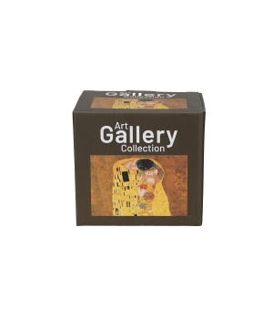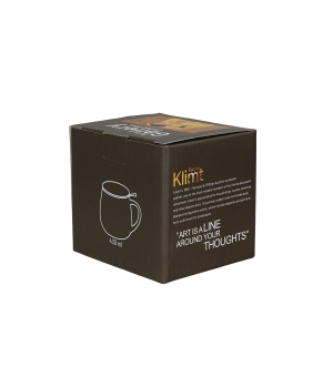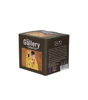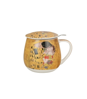 Kubek baryłka 430 ml z zaparzaczem i pokrywką THE KISS Classic inspired by Gustav Klimt wchodzący w skład serii Art Gallery, wykonany z porcelany New Bone China, charakteryzującej się elegancką i naturalną kremowo - białą barwą z delikatnym połyskiem, a także wyjątkową wytrzymałością.