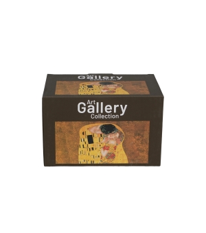 Komplet dwóch kubków 360 ml THE KISS Classic inspired by Gustav Klimt wchodzący w skład serii Art Gallery, wykonany z porcelany New Bone China, która charakteryzuje się naturalnym kremowo-białym kolorem z delikatnym połyskiem oraz wyjątkową wytrzymałością i trwałością, zachowując lekkość i finezję.