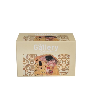 Komplet dwóch kubków classic THE KISS ECRU inspired by Gustav Klimt wchodzący w skład serii Art Gallery, wykonany z porcelany New Bone China, która charakteryzuje się naturalnym kremowo-białym kolorem z delikatnym połyskiem oraz wyjątkową wytrzymałością i trwałością, zachowując lekkość i finezję.