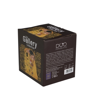 Filiżanka z dzbankiem z linii The Kiss BROWN inspired by Gustav Klimt, wykonana z porcelany New Bone China, charakteryzującej się elegancką i naturalną kremowo - białą barwą z delikatnym połyskiem, a także wyjątkową wytrzymałością.
