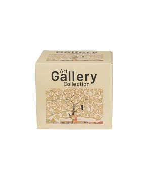 Kubek baryłka 430 ml z zaparzaczem i pokrywką TREE OF LIFE Ecru inspired by Gustav Klimt wchodzący w skład serii Art Gallery, wykonany z porcelany New Bone China, charakteryzującej się elegancką i naturalną kremowo - białą barwą z delikatnym połyskiem, a także wyjątkową wytrzymałością.