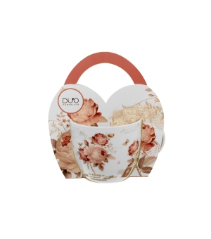 Kubek 460 ml "w koszyczku" SECESJA wchodzący w skład serii Kwiaty Classic, charakteryzuje się naturalnym kremowo-białym kolorem z delikatnym połyskiem oraz wyjątkową wytrzymałością i trwałością, zachowując lekkość i finezję.
