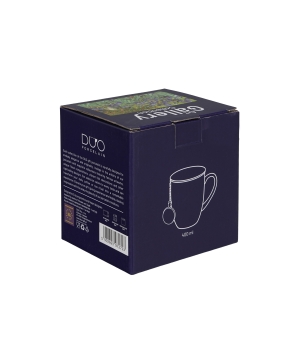 Kubek z metalowy zaparzaczem z zawieszką IRISES inspired by Van Gogh wchodzący w skład serii Art Gallery, wykonany z porcelany New Bone China, charakteryzującej się elegancką i naturalną kremowo - białą barwą z delikatnym połyskiem, a także wyjątkową wytrzymałością.