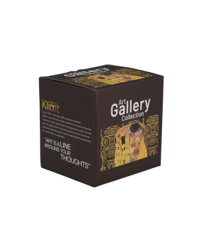 Kubek na stopce z zaparzaczem THE KISS BROWN inspired by Gustav Klimt wchodzący w skład serii Art Gallery, wykonany z porcelany New Bone China, charakteryzującej się elegancką i naturalną kremowo - białą barwą z delikatnym połyskiem, a także wyjątkową wytrzymałością.